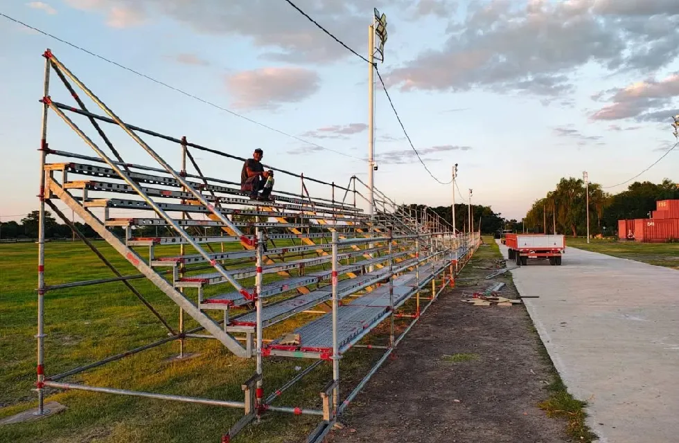 Pedro Mazzuchini, propietario de la firma, explicó que cuentan con tribunas de distintas dimensiones construidas con sistema Layher, material que recientemente comenzó a utilizarse en el país. Además, señaló que trabajan de manera conjunta con la empresa JCO SRL, también ubicada en el Parque Industrial de Goya, que provee parte de los insumos necesarios, conformando una alianza estratégica para el armado de las estructuras. Si bien Metalfort fabrica algunas piezas, la mayor parte del material es importado.