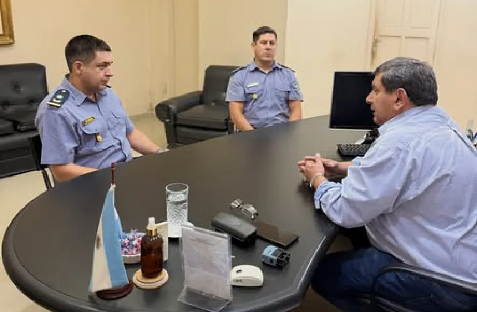 El intendente de Santa Lucía, Norberto Villordo, mantuvo un encuentro institucional en su despacho con las nuevas autoridades policiales que asumirán funciones en la ciudad. En la reunión participaron el comisario Ernesto Montiel y el oficial principal Castillo, quienes recientemente fueron designados para encabezar la conducción de la fuerza de seguridad local. Durante el encuentro, el jefe comunal les dio la bienvenida formal, destacando la importancia del trabajo que desarrollarán en esta nueva etapa y expresándoles sus mejores deseos en el desempeño de sus funciones.