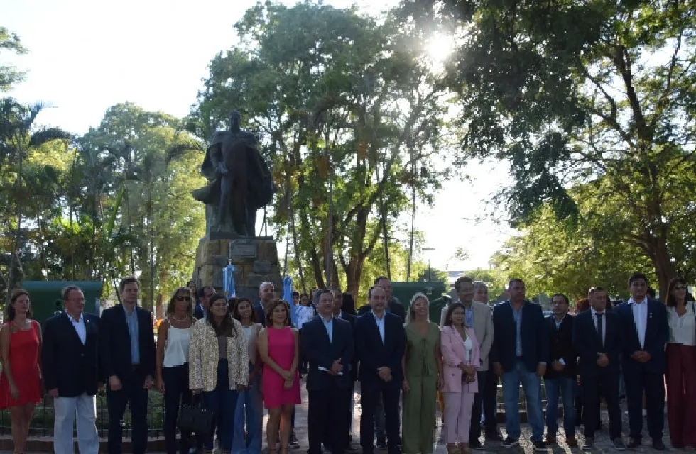 El homenaje estuvo encabezado por el intendente Mariano Hormaechea, junto al viceintendente y presidente del Concejo Deliberante, Sebastián Mazzaro. Acompañaron autoridades civiles, militares y de fuerzas de seguridad, representantes de instituciones educativas, asociaciones culturales y vecinos que se acercaron para participar de la conmemoración. La presencia de las banderas de ceremonia y la interpretación en lengua de señas aportaron solemnidad e inclusión al encuentro.