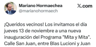 El Intendente invita a una nueva inauguración del Programa “Mita y...